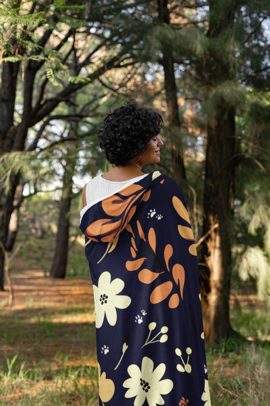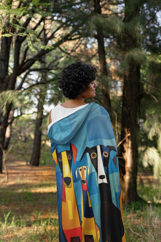 Hooded Blanket - Blue Boho design with Paw Prints
