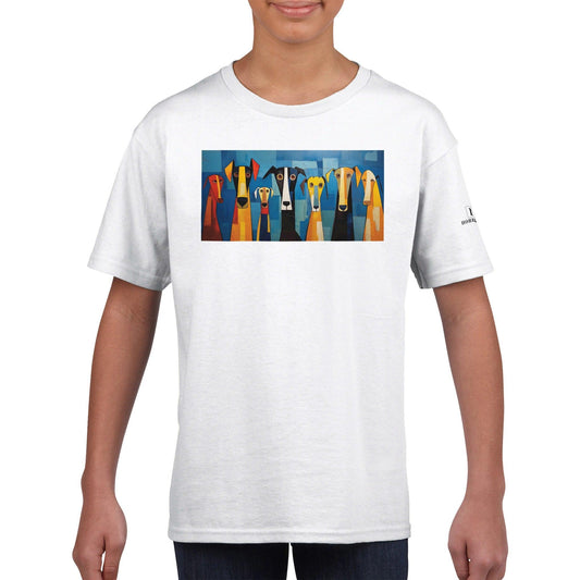 Classic Kids Crewneck T-shirt with Abstract Dog Pack Design
