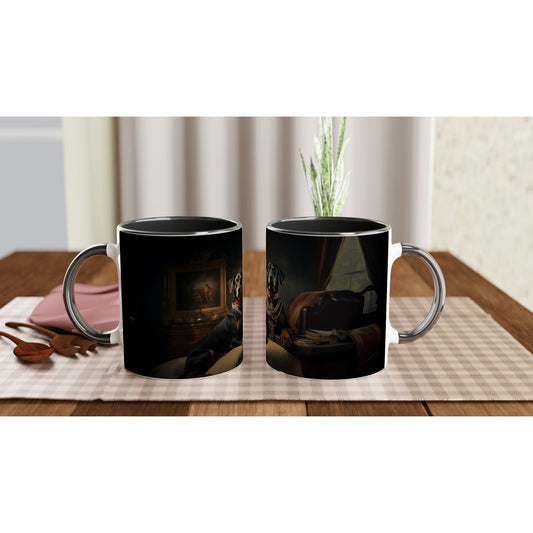 11oz Two-Tone Coffee Mug Featuring Art Deco Doberman Design