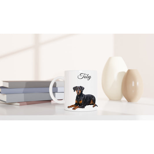 Personalised 11 0z Ceramic Mug | Add Your Own Photo To One Side, Fixed Doberman Owners Club On Other Side