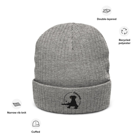Ribbed Knit Beanie Featuring an Embroidered Doberman Logo