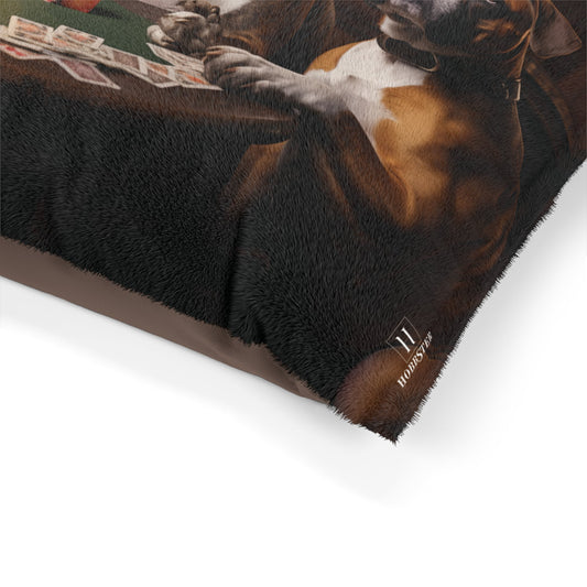 Fleece Dog Bed in Brown with Boxer custom vintage design