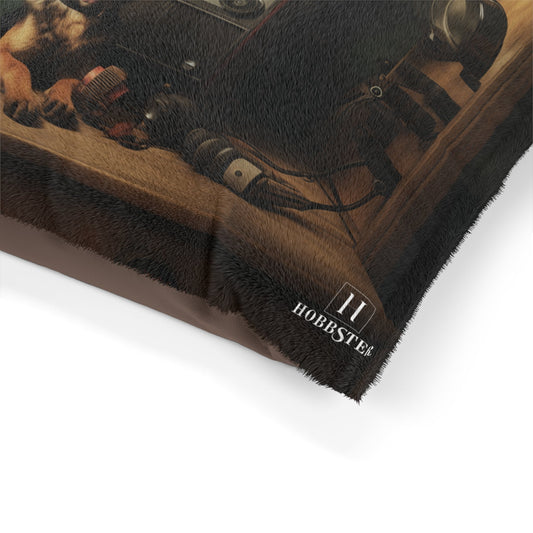 Fleece Dog Bed in Brown with German Shepherd custom vintage design