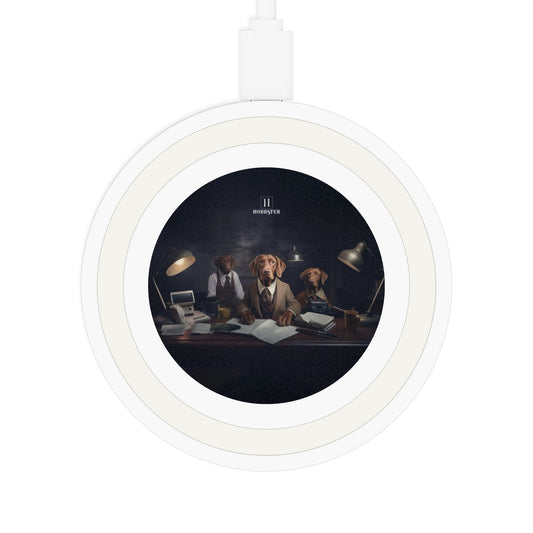 Quake Wireless 5W Charging Pad featuring a vintage Hungarian Vizsla dog design [2.7"w x 0.33"h]