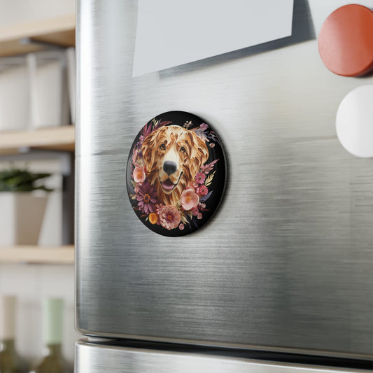 Round Button Fridge Magnet featuring a Golden Retriever Paper Quilling Design [2.25"]