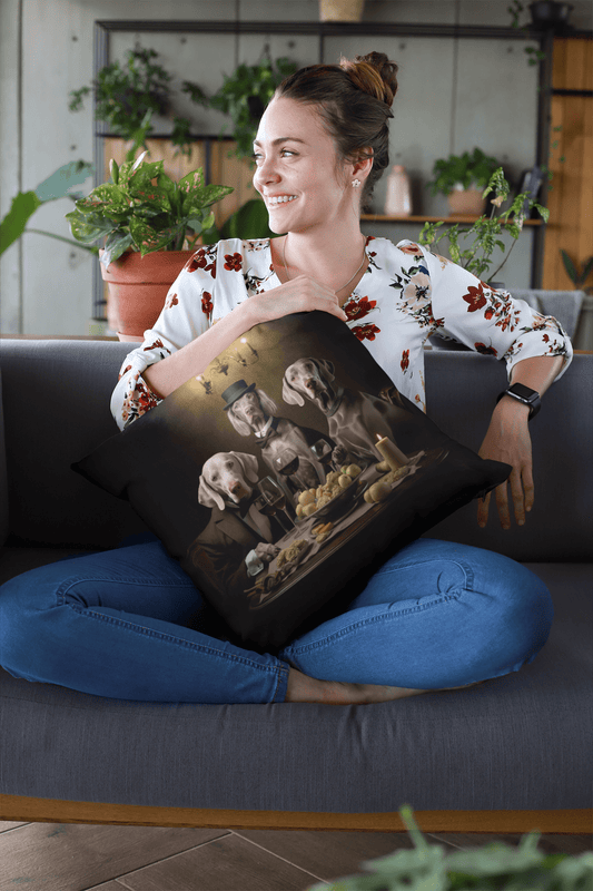 Square Pillow featuring Cottage Core Dogs Running Free Design