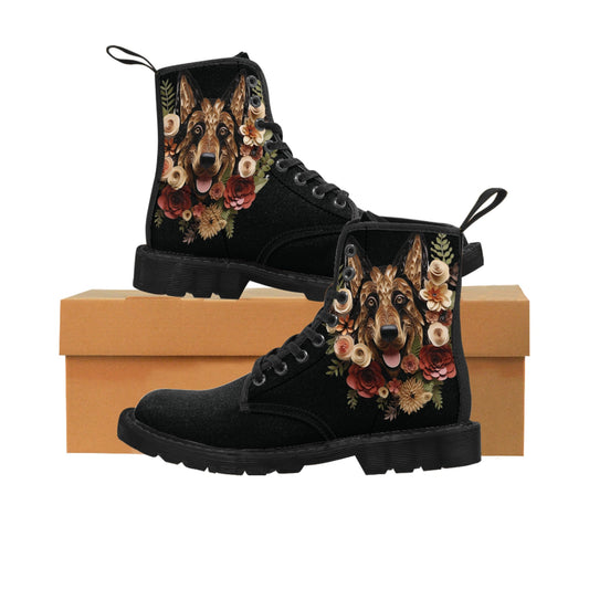 Women's Canvas Boots featuring a German Shepherd Paper Quilled Effect Design