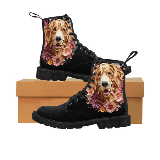 Women's Canvas Boots featuring a Golden Retriever Paper Quilled Effect Design