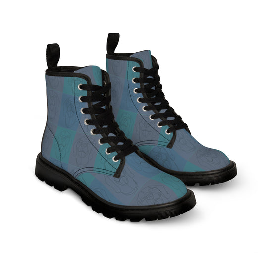 Women's Canvas Boots featuring a Rhodesian Ridgeback tile effect design [Blue]