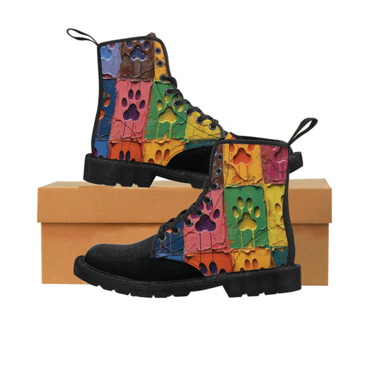 Women's Canvas Boots Featuring Large Paint Paw Prints