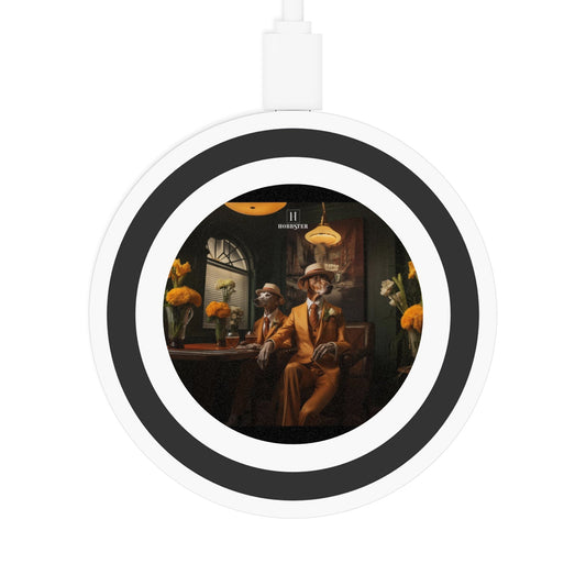 Quake Wireless 5W Charging Pad featuring Art Deco Greyhound Design [2.7"w x 0.33"h]