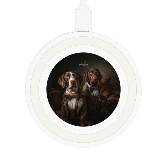 Quake Wireless 5W Charging Pad featuring a vintage German Short Haired Pointer design [2.7"w x 0.33"h]