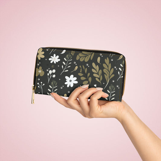 Printed Zipper Wallet - Green Boho Design with Paw Prints
