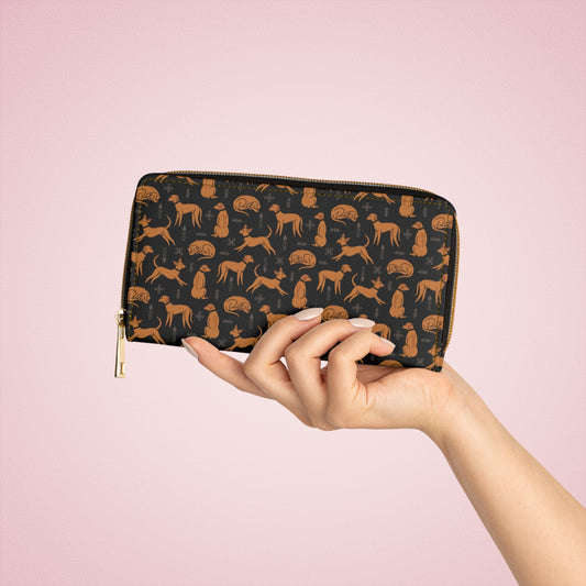 Printed Zipper Wallet - Multiple Dogs on Black